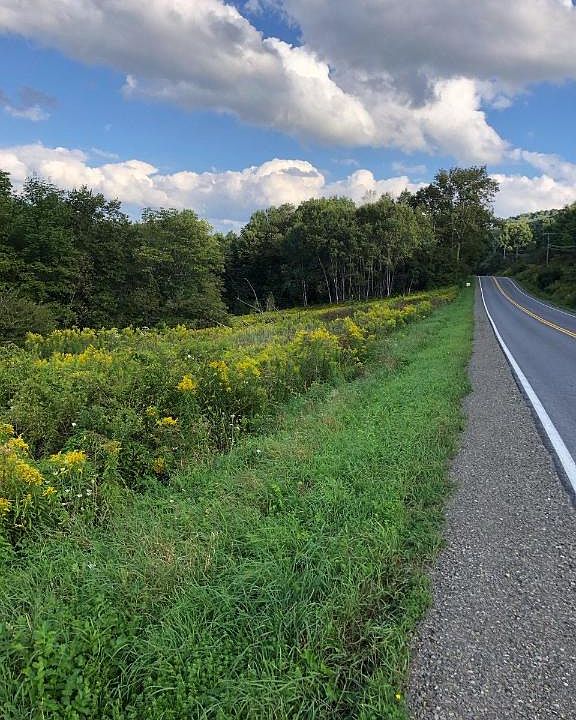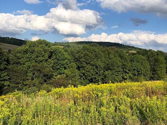 1/2 open, 1/2 wooded, stream, lots of road frontage on County Route 14 and Blue School house Road, near Oneonta, Delhi, Franklin, NY Springs, NYSEG pole by stream on Blue School House Road.