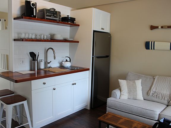 Furnished studio unitEat in kitchenPrivate deck with views