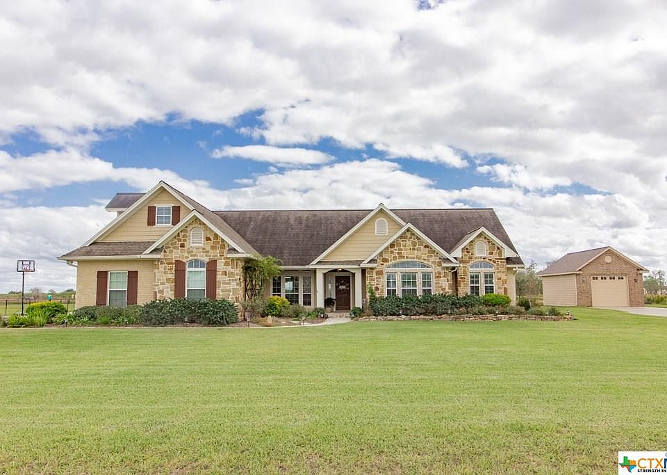 Gorgeous custom 4BR, 3BA Ken Richter home on approx. 1 acre on the north side of Victoria! Featuring a gourmet kitchen with granite counters, center island, stainless appliances, double ovens, and 6 burner gas cooktop that opens to a large breakfast room and the spacious living room complete with its welcoming fireplace. The master suite is a dream come true with his and hers closets, gorgeous quartz vanities with tons of cabinets, a modern soaking tub and a huge shower with multiple jets. With 3 more bedrooms and an upstairs game room, this home has room for everyone! Enjoy life outside on the large covered patio or in your 20ft x 30ft shop complete with a 1/2 bath.