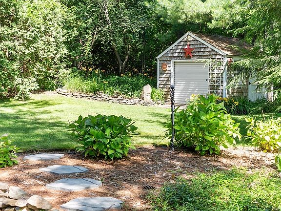 Custom Built Contemporary Cape, Breathtaking Private Yard, Stunning Floor Plan. Come see this beautiful 7 room, 2 bedroom, 2.5 bath, 2 car garage on a gorgeous 1/2 acre lot. LOVE the Chef's kitchen with 7' center island w/seating for 4, built in cooktop/oven, quartz countertops, solid birch cabinets, vaulted ceiling, pantry and slider to 2-tiered outdoor deck for summertime fun. Front to back living/dining room combo with gas fireplace, ductless a/c, 2 story vaulted ceiling and recessed lighting, great space for entertaining. Family room and 1/2 bath complete the 1st floor. 2nd level includes private main bedroom w/full bath, french doors, sky lights, vaulted ceiling. Full bath w/glass & tile shower, jetted tub, laundry room+walk in closet. Enjoy the office area with hardwood floors, 2nd bedroom, 2nd full bath with tub & shower and linen closet. Full basement for storage. LOVE the lavish landscaped yard w/blooming perennials, fire pit, jumbo storage shed & privacy galore.