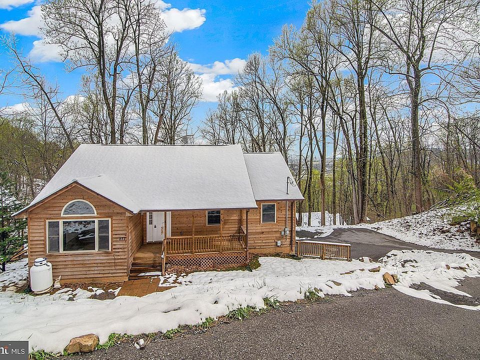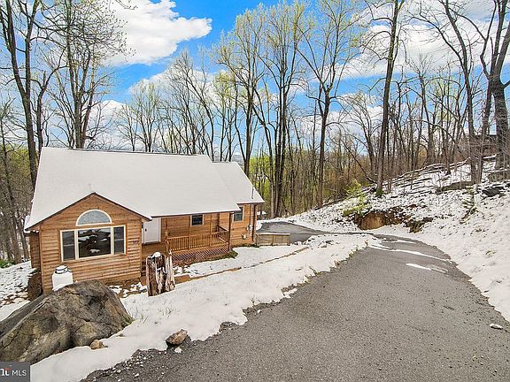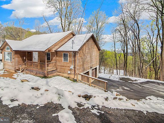 Positioned on the tranquil mountainside, this property has a rear deck to ensure you will remain enthralled with its breathtaking view of the Blue Ridge landscape. Ample sized combined living and dining area, upscaled with a Palladian window, fireplace and bowfront window to wrap around the perfect farm-to-table supper. The open floorplan kitchen is well-suited to fire up that big pot of chili and yet still be engaged with the evening's lively conversation. Master bedroom outfitted with both shower stall and bathtub. Lower level remains unfinished but open to your imagination for use as a hobbyist space, media room, gaming center or storage. Two car side entrance garage and driveway parking. An easily-accessible vacation getaway and yet large enough to be comfortable for a primary residence. Just 9 minutes from Route 66 and summer evenings getting tasty treats at The Apple House! Washer and dryer included, pets negotiable.