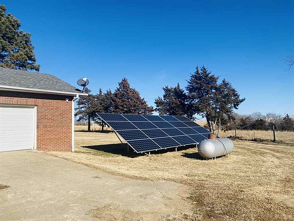 All brick exterior home with 77.68 acres for sale. House has 2 bedrooms and 1 bathroom with 2 "sun rooms" and a wood burning fireplace in the living room. Solar panels were added in the last year keeping electric usage at $36/ month. Twin Valley Fiber Optic is run to the house. There is a small poured cellar that has the well, pressure tank, water heater and water softener. Land consists of 34.97 acres of dry land, 41.16 acres of native grass and 0.63 of tame grass.