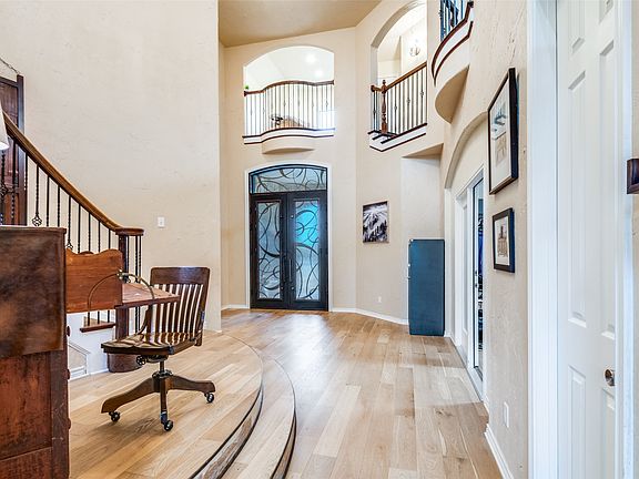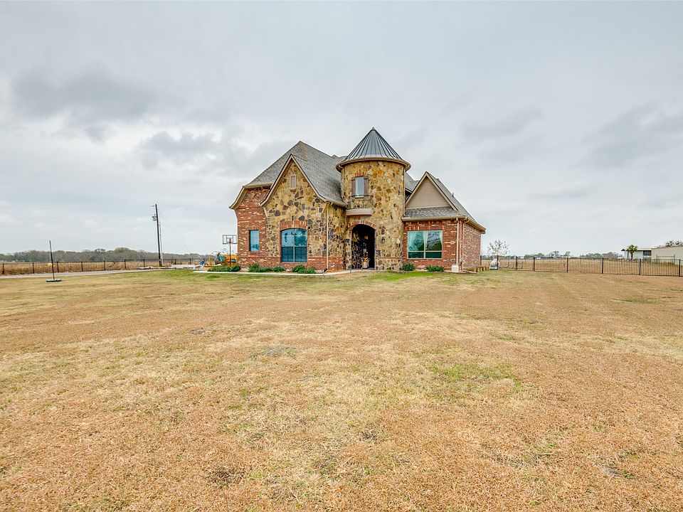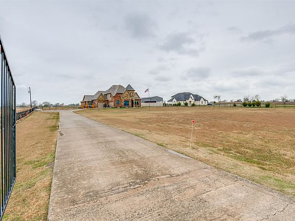 Enjoy almost 4 acres and bring your horses! Country living, yet close to the city! The gated entrance with automatic gate has a long driveway that leads to the beautiful custom home! This spacious home featuring stone and brick offers 4 - 5 bedrooms, a 3 car garage, and tons of storage! The front has a beautiful, grand entrance with gorgeous steel doors! The foyer has a stunning curved staircase, soaring ceilings and a Juliet balcony. The living area boasts a beautiful fireplace, views of the back yard and pasture, and is open to the spacious kitchen and breakfast area. The kitchen features custom cabinets, a moveable island, breakfast bar, pantry, and is plumbed for gas. The primary bedroom has a separate sitting area and a large bath with spacious shower and separate vanities. The first floor also features another bedroom with full bath. The utility room currently has a second refrigerator, stackable washer and dryer, and an upright freezer. Upstairs you will find two more bedrooms (one was formerly a media room and can be converted back), a second living area, and Juliet balcony area that could be a lovely sitting area. There is attic area upstairs that the previous owners said has an add'l 300 sf for another bed and bath. This is an amazing home that has so much to offer!