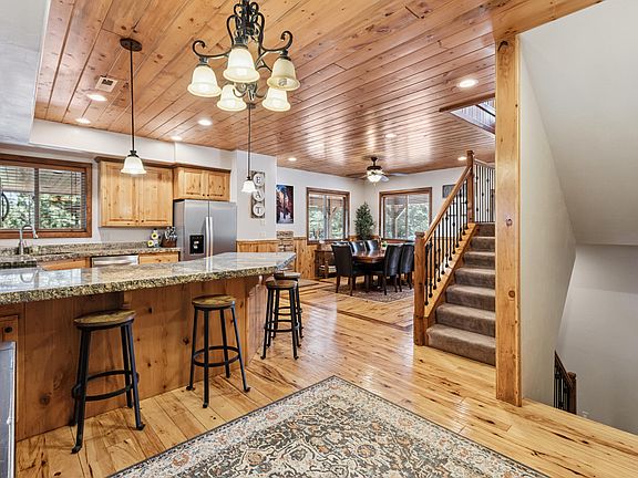 Enjoy crisp mountain air from your covered deck with a private hot tub. Or gather around the wood stove in the oversized garage/game room which offers additional entertaining space and storage. With ample parking and situated on a .8-acre wooded lot, guests will have room for privacy and relaxation.