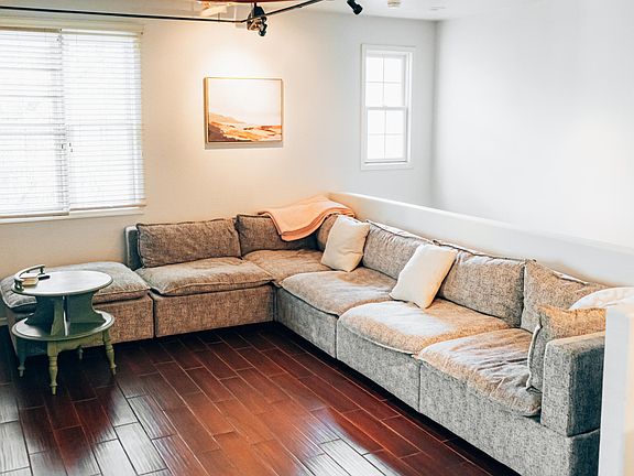 The layout is open and bright, with large windows that bring in plenty of natural light. There's no carpet anywhere—only durable, easy-to-maintain flooring throughout. The kitchen features stainless steel appliances, granite countertops, and installed lighting throughout gives the home a warm, modern touch.