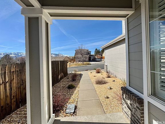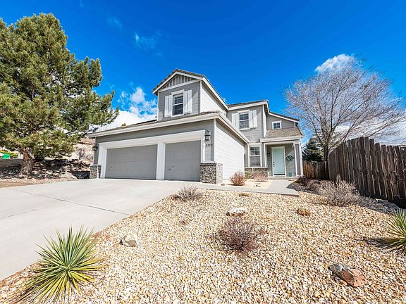 Nestled in Northwest Reno, this beautifully updated home offers an open-concept living space with high ceilings and an abundance of natural light. Walk to Melton Elementary, McQueen HS and the Terrace Sports Complex. Inside, discover the entertainers great room including the quartz countered kitchen, formal dining, office or the option for two flex spaces (see photos). Upstairs includes the spacious primary with updated ensuite. Two additional bedrooms with wonderful mountain views and the guest bathroom., Step out to the backyard and enjoy your own sanctuary with the stamped concrete patio and walkway, manicured landscaping, optional dog run, storage shed and pre-wired for hot tub. Additional features include a newer water heater, carpets, lvp flooring, quartz counters in bathrooms and kitchen and don't forget the 3 car garage which is uncommon for this floorplan.