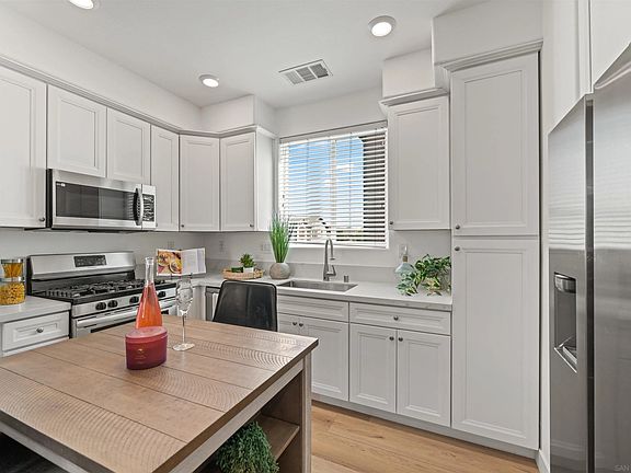 Welcome to this Incredible, Upgraded, Move-in Ready Corner Townhome with LOW HOA! This stunning 2-bedroom, 2.5-bath corner unit offers the perfect combination of modern comfort, functionality, and style. The open-concept layout features abundant natural light and a private balcony — ideal for relaxing or enjoying your morning coffee/ BBQ weekend. Beautifully upgraded throughout, this home boasts New Luxury Vinyl Plank Flooring with cork foam underlayment, fresh interior paint, and modern bathrooms with Bluetooth speaker lighting fans, and elegant finishes. Additional highlights include recessed lighting with WiFi switches, an Owned the Whole House Aquasana Salt-Free Water Conditioner & Filtration System (8 years of warranty remaining), installed EV outlet, tankless water heater, Duo Panel Windows/Sliding Door, beautiful granite countertop and updated kitchen appliances, including a dishwasher, refrigerator, washer/dryer, and an electric fireplace - all upgrades within 2 years. Located in the highly sought-after Eastlake community, residents enjoy resort-style amenities such as a pool, hot tub, multi BBQ area, dog park, and toddler playground — all with a LOW HOA fee. Conveniently situated near top-rated schools, Otay Ranch Town Center, parks, and dining, this home offers an exceptional lifestyle opportunity in one of Eastlake’s most desirable neighborhoods. Don't miss your chance — come see it before it’s gone!