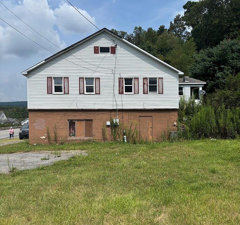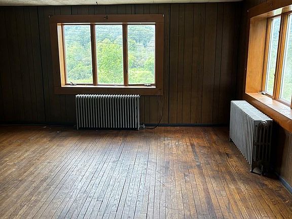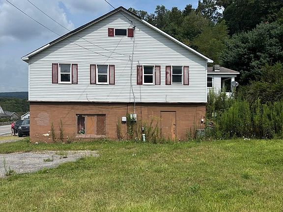 Raised ranch with large tandom garage and additional space which could used as office space or additional work space . Main level has 3 bedrooms one bathroom open kitchen, dining , living room area. Laundry room, mud room and covered porch . Additional barn on the hillside as well. This property has so much potential !