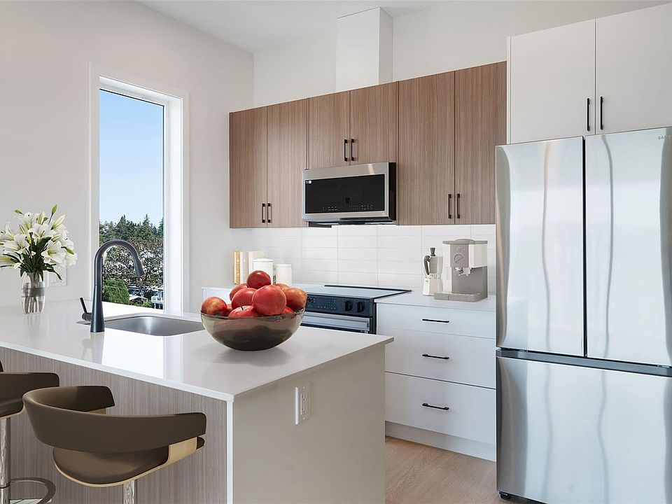 Exciting Times at Winster Court! The new buyer will get to create a custom $10,000 DREAM VACATION with purchase! MOVE IN READY! 5% deposit! A unique 2-bed, 2-bath floorplan. A spacious southwest-facing balcony offers stunning views. Award winning builder, Viking Properties presents Winster Court. Heat/cooling pump, EV-ready parking stalls, Samsung Elite SS appliances, wide plank luxury vinyl floors, tile backsplash, quartz countertops & spacious decks to give each residence a welcoming, contemporary feel. Ply-Gem, x-large windows provide plenty of natural light! Lifestyle conveniences such as a courtyard, pet areas, rooftop solar panels, & bike storage. Winster Court boasts PREMIUM soundproofing! Pet Friendly (2 dogs or 2 cats),in the Heart of Langford w/ WALKSCORE of 92. The Westshore’s best shops, dining, parks, recreation & best biking trails including the E&N trail system right outside your front door. OPEN HOUSE EVERY SATURDAY 11:00AM-2:00PM AT 2770 WINSTER ROAD.