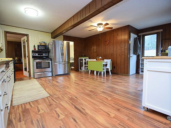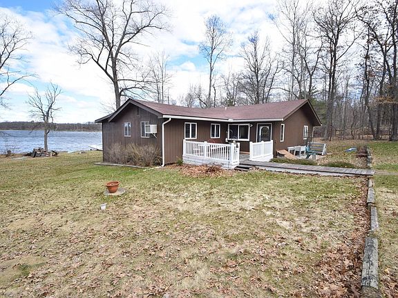 Gorgeous private level lot w/150' of shoreline, 1.25 acres & absolutely perfect elevation to the lake! Our #1 request. All one level 4 season 3 BR, 2 BA lake home w/main floor laundry, spacious living areas, vinyl plank flooring throughout, large BR's, w/3rd BR lakeside w/gorgeous view, partial bsmt and off-peak electric with thermal storage units. Separate family room/office lakeside w/access to lakeside deck just off the water. Being sold furnished/turn-key! Several updates w/flooring, custom tiled showers, stainless fridge, painted exterior, gutters, etc. You can just step in an enjoy this pristine low-key lake with only public canoe/kayak access. Ideal for all types of boating recreation but quiet. 2 car det. gar. and plenty of room to add on or build a 2nd garage! Located off a dead-end-road, in the heart of the county w/UTV trails out your back door, northwestern exposure for those perfect summer sunsets! An absolute gem of a property!