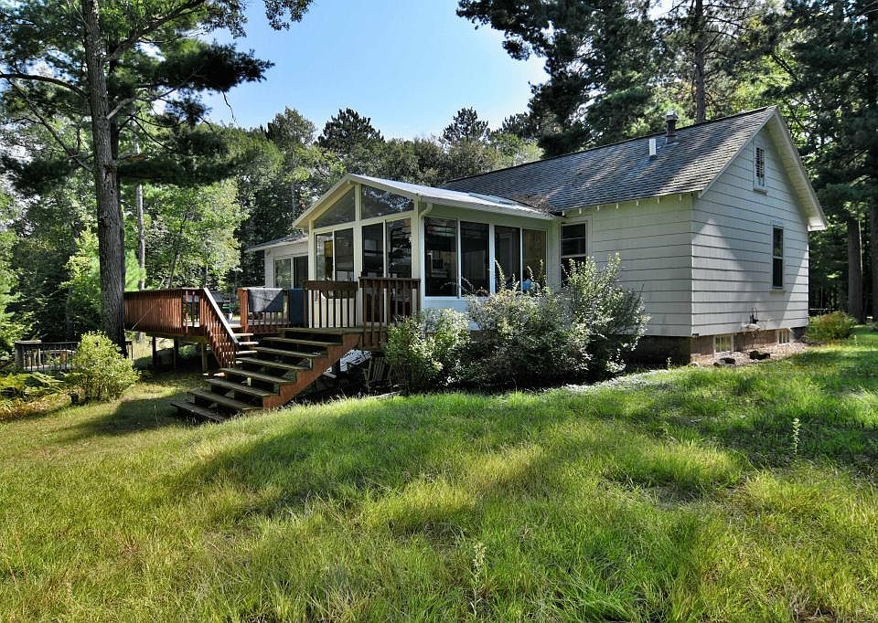 225 ft of frontage with almost 2.5 acres of land on one of the best fishing and recreational lakes, the Yellow Lakes; 40 mns from the MN border. Spacious Remodeled interior features hard wood flooring, updated lighting, kitchen and bathroom, 3 season sun porch with sky lights, decking, basement ready for finishing, plenty of room for growing room and storage! Furniture, swing set, docks, paddle boat and more included!