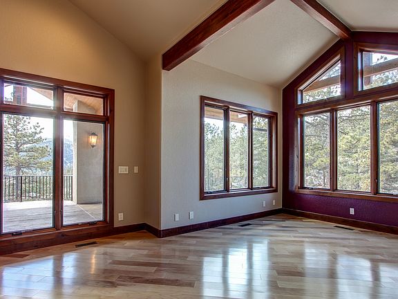 Spectacular Mountain Estate Home~Dramatic South Facing Windows For Endless Peak Views~Exceptional Quality Finishes~Soaring Wood Beam Ceilings~One Acre Cul de Sac Lot Borders Nat Forest~Great Rm w/2 Story Stone FP~Knotty Alder Gourmet Island Granite Kitchen w/Walkin Pantry~DR w/Gas FP Walks Out to Paver Patio~Expansive Decks & Patios~ML Master Suite + 3 Ensuite BRs~ML Office~View Loft~Huge Walkout Bsmt w/Stone FP, Bar/Kit Area, Media Area, Huge Laundry, Jr MSuite~Solid Knotty Alder Doors/Trim~A/C, Sur Sound, Heated Garage. Enjoy true Colorado living in this spectacular view home with unparalleled finishes. Fabulous open concept designed for entertaining inside & out! Perfect ambiance for an intimate evening but also flows beautifully for the largest gatherings. Maple floors thru ML. Foyer opens to Great Rm w/high ceilings, exposed beams, 2 story stacked stone FP & walk-out to deck. The Gourmet Kitchen will delight the chef w/walk-in pantry, knotty alder cabinets w/crown molding & granite counters. Expansive island w/counter bar & upgraded SS Jenn-Air appl incl dishwasher, gas range w/double ovens & side by side refrigerator. Adjoining DR w/gas FP walks out to a paver patio. Double doors to the vaulted Office w/huge Peak views. Walk-Out Master Suite w/beams, dual sided FP, & Spa Bath w/walk-in closet, dual head shower, jetted tub & washer/dryer hook-up. Curved iron staircase to UL 2 ensuite BRs w/walkin closets & large view loft. BR 3 has a private balcony. The Loft has breathtaking Peak views. Expansive walk-out Bsmt features a FR w/stone FP, Media Rm w/sur sound, Wet Bar/Kitchen w/granite counters. Huge Laundry Rm w/granite counters & sink. Walkout Jr. MSuite w/ensuite 5pc granite bath, jetted tub, shower & walk-in closet is perfect for guests.