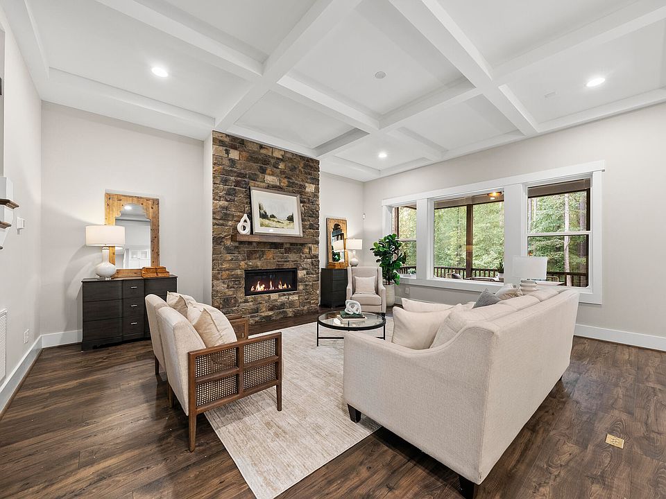 Located in the highly sought after Green Level corridor in Apex, this home checks all the boxes The home sits tucked away in the rear of a cul-de-sac and on a nicely landscaped, level lot. The home backs up to a naturally wooded buffer and is just steps away - and with direct access - to the White Oak Creek Greenway, which feeds into the American Tobacco Trail. 1st and 2nd level porches (1st level screened) overlook a backyard oasis consisting of a heated and cooled salt water swimming pool with tanning ledge, waterfall accents, expansive stamped concrete decking, fire pit area and a pergola covered outdoor kitchen with grill, side burners and refrigerator. Inside you'll find a gorgeous home with modern features, tall ceilings, an open layout and hardwoods or tile throughout (no carpeting). The large kitchen is finished with beautiful cabinetry, granite counter tops, tile backsplash, a huge island and walk-in panty and overlooks a family room with soaring 11' coffered ceilings and a fireplace encased in floor-to-ceiling stone. 1st floor guest bedroom with en-suite bath. The 2nd level consists of a a spacious primary suite with tray ceiling, direct access to the 2nd story screened porch, large closet and a gorgeous en-suite bath, bonus room, 3 secondary bedrooms and 2 full baths. The floored and pre-plumbed attic offers the ability to add additional finished square footage or endless storage options. Additional: roof mounted solar panels that generate approximately 13-14 MWh per year, finished security system, powered blinds in the bedrooms, sealed crawl space, 220V outlet in garage, wired for fiber Internet providers Spectrum, Google and/or At&t.