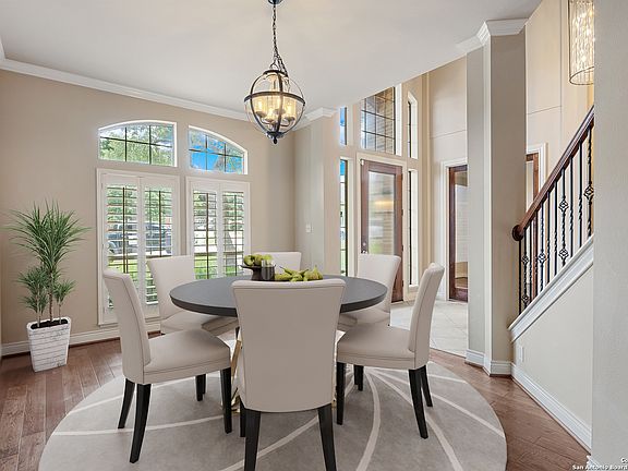 Tucked beneath mature trees and timeless curb appeal, this beautifully maintained two-story home in Limestone Ranch offers the perfect blend of space, comfort, and upgrades. Situated on a large lot in a sought-after gated community, the property boasts soaring ceilings, plantation shutters, and elegant architectural details throughout. The light-filled living room features a dramatic wall of windows and a cozy fireplace, flowing seamlessly into a well-equipped kitchen with granite counters, double ovens, and a center island. The spacious primary suite is a true retreat, complete with bay windows and a spa-like bath with dual vanities, soaking tub, and separate shower. A dedicated office and formal dining room add functionality, while the upstairs loft provides additional living flexibility. Step outside to enjoy a peaceful backyard with an extended deck, ideal for relaxing or entertaining. Zoned to top-rated Boerne ISD and just minutes from shopping, dining, and major highways-this home has it all!