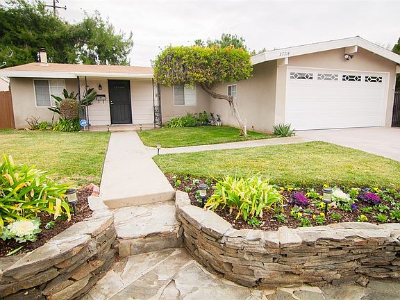 Super sharp single story family home in Canyon Country. Remodeled kitchen with stainless appliances. Wood laminate floors that are sharp. both baths have been remodeled. Electric and A/C have been upgraded. Plumbing redone. Good sized private yard with grass and patio, wood and block fencing. Popular floor plan with vaulted ceiling in living room. 3 beds and 2 full baths. Nice unpermitted family room added too. 2 car attached garage with epoxy floors - Sharp!