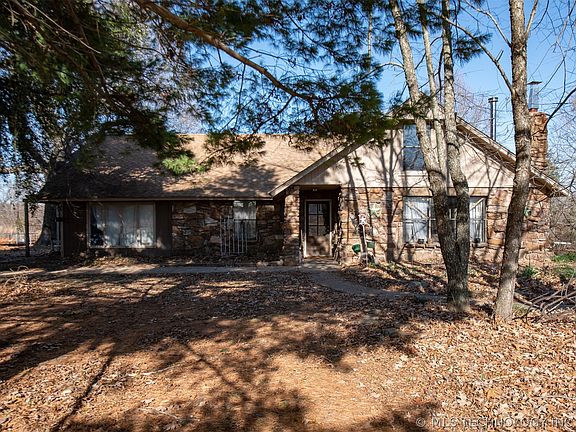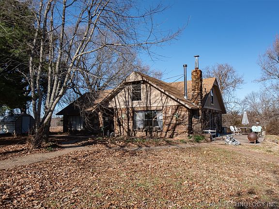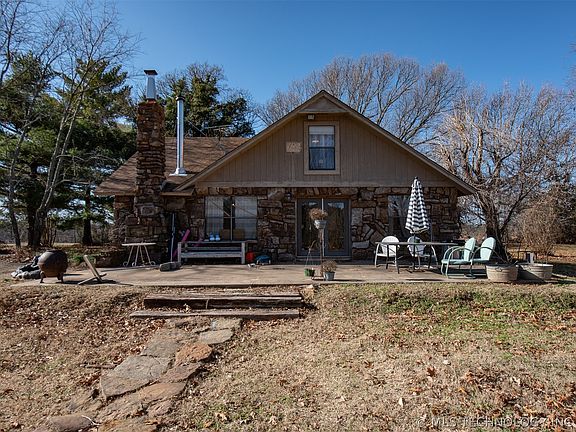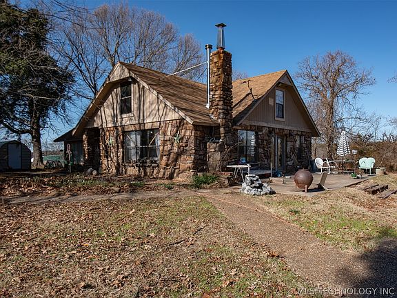 Tucked into the wooded hills, this stone country home has so much to offer! Four bedroom, two bath, over two thousand square feet of living space, with french doors that open to a concrete patio that overlooks the inground pool. Woods and hills surround the home, offering seclusion. Cross fencing separates pasture for grazing, and a live creek on the land runs all year long. Huge mature oaks and pines grace the yard, perfect for shade and tree swings. Located in the county, the land has no restrictions, so you can create the perfect hobby farm or retreat. NE Oklahoma is replete with whitetail deer, wild turkey and more, and Lake Tenkiller provides clear waters and is known for the best lake to go scuba diving, as well as fishing, as bass and catfish abound.