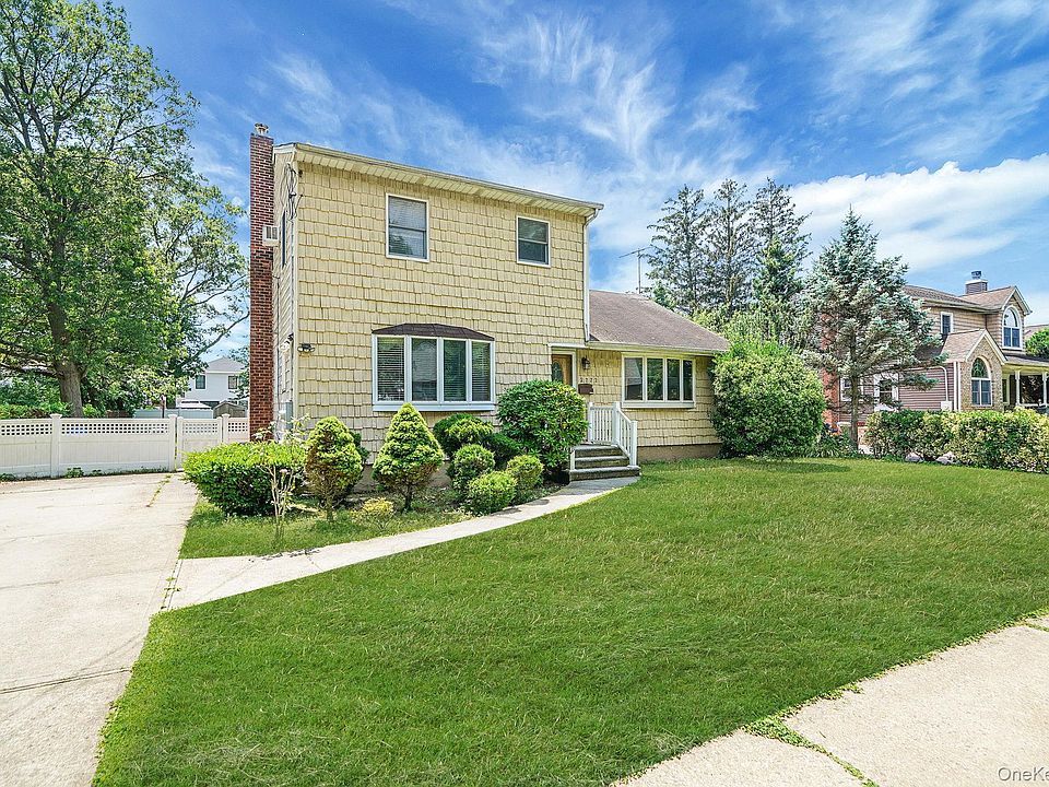 Well maintained East Meadow colonial with 4 bedrooms and 2 full bedrooms. Large living room, full dining room, den, and eik. House sits on oversized property (1/4 acre), and has a heated sunroom, 2 a/c split units (on 1st floor), full basement, and 2 attics (for storage). Vinyl siding. The outside property features a 12 by 12 deck, pvc fencing (on 2 sides of the yard), inground sprinklers (on front lawn), and 2 sheds. Close to stores, parkways, restaurants, and houses of worship. The elementary school is a half a block away.