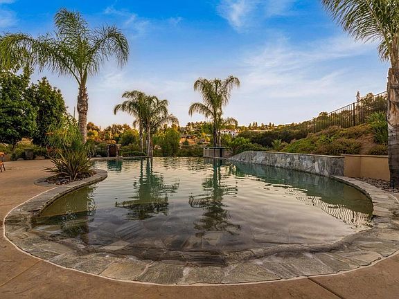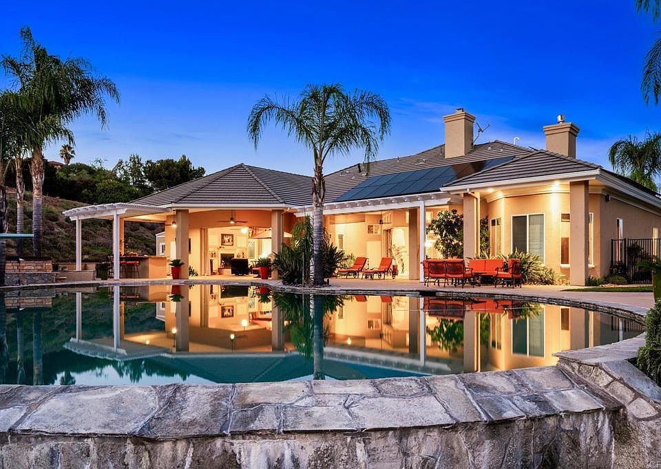 Welcome to 2772 Firebrand Drive also known as “Casa Ensueño.” This DREAM HOME is a stunning single level estate located in the exclusive guard gated community of Rancho Palo Verde Estates. Wonderful split floorplan with a no step entry! Set on over 2 acres, Casa Ensueño is an entertainer’s delight, resort style palm oasis where expansive glass pocket doors frame unobstructed views of your private backyard. Infinity edge pool with cascading waterfalls, walk-in beach entry and lush tropical landscaping with a fully equipped outdoor kitchen are just a few of the luxury surroundings. Tranquil and private, the setting feels like your own exclusive retreat. A Chef’s kitchen features all stainless steel appliances with tons of extensive cabinetry. Don’t miss the dual dishwashers, pot filler, warming drawer and appliance garage. The luxurious primary suite offers French doors to the patio, a dual-sided fireplace, private sitting area, dual walk-in closets, and separate dual bathrooms with a unique master bath water fill. Each guest bedroom includes an en-suite bathroom. The office boasts custom built-in cabinetry, hardwood floors, and desk with sweeping eastern views. Fully owned solar for energy efficiency. Three car garage has a pull-thru option. Boat/RV Storage in the side yard behind beautiful custom iron and wood gates. Meticulously maintained and extensively remodeled, Casa Ensueno showcases tumbled stone tile floors, fresh exterior paint and so much more! Every detail reflects quality and sophistication, making this estate a true Rancho Palo Verde showpiece.