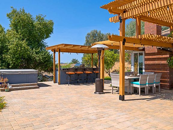 Completely renovated in 2019, welcome to this impeccably maintained & beautifully appointed single-level home! With pride of ownership exuding throughout, no detail has been spared with the open concept living design & many upgrades to include elegant porcelain tile flooring throughout, many picture windows with UV blocking shades, entertainerâs kitchen and oversized quartz circular island. Move outdoors for a dream space that includes a built-in fire pit, outdoor kitchen, cascading waterfall and more!
