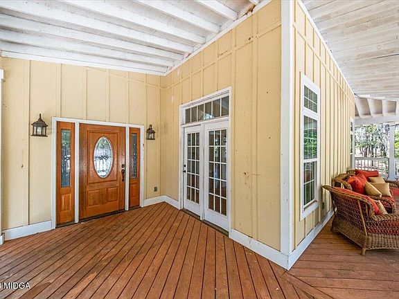 Low country style home on 8.5 acres in a prime South Monroe County location. Nestled in the hardwoods offering privacy, also has open areas perfect for pasture with room to roam. Wrap around porch & screened porch with outdoor kitchen makes entertaining easy. Great room with hardwood floors, vaulted ceilings & wood burning fireplace. Kitchen features solid surface counters, a farmhouse sink, and open to dining space with an abundance of windows. Office could be third bedroom. 33 x 32 detached garage with workshop and heated/cooled workout room. Needs some TLC & cosmetic updating. Sold as is.
