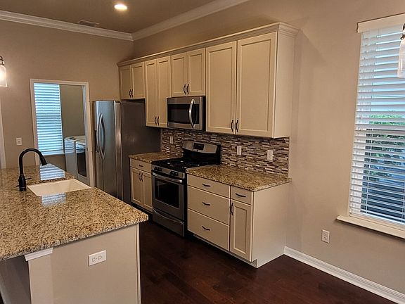 Discover this beautifully maintained home on a serene street in the desirable Oakmont neighborhood. The open floor plan seamlessly blends the living room, dining area, and kitchen, creating a perfect space for both relaxation and entertainment. The modern kitchen boasts granite countertops, solid wood cabinets, stainless steel appliances, and a convenient breakfast bar. The home has a split floor plan with a spacious master suite, including crown molding, double vanities, a walk-in closet, and a large tiled walk-in shower. The master bedroom and living areas have hand-scraped wood flooring, while the guest bedrooms are carpeted. The guest bathroom offers an oversized soaking bathtub. Detached garage has two spaces; additional street parking available. The rent includes access to Oakmont's amenities, which include a resort-style clubhouse, pool, fitness center, tennis and pickleball courts, basketball courts, a playground, and community events. Pets considered on a case-by-case basis. Utilities: Tenant responsible for all utilities, internet and cable (the home is energy-efficient, with solar panels and low-E windows (neighborhood is serviced by Clay Electric) Lawn maintenance is negotiable: renter's responsibility or provided for an additional $100/month Lease term: Mininum 12 months No smoking allowed