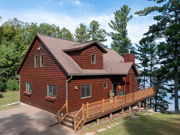 Discover the epitome of lakeside luxury at the Impeccable Lakeside Chalet on serene Little Yellow Lake, with seamless access to Big Yellow's fishing, recreational activities & boat to the bar/grills. This enchanting 4 bedroom, 3 bathroom retreat includes a loft transformed into a private master suite. Nestled on 1.38 acres of majestic pines & mature trees, enjoy unparalleled privacy amid the woods. Accessibility is ensured with a tram and concrete steps leading to 158 feet of level riprap shoreline with a sandy lake bottom. The nearly century-old boathouse, named "Norway Slope", adds a touch of nostalgia by the water's edge. The 3 level Chalet is crafted by a custom builder and maintained by a single owner; it boasts modern updates like a trendy SunSpace Retractable Window Seasonal Porch, new HVAC and A/C, new docks, and a completely remodeled kitchen. The newly finished walkout basement with a wet bar complements the professionally landscaped grounds. Experience the perfect blend of timeless charm and beauty. (All this with most furniture included!)