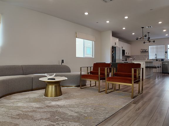 creating an airy and inviting ambiance. Elegant **Shaw vinyl plank flooring** and **dovetail soft-close drawers and cabinets** add a touch of sophistication throughout. The **expansive kitchen** is a chef's dream, featuring **36-inch upper cabinets, quartz countertops, a center island, and brand-new appliances**. The **primary suite** is a private retreat with an oversized closet and a spa-like bath, complete with a **tub, separate shower, dual-sink vanity, and enclosed water closet**. Designed for efficiency and comfort, this **ENERGY STAR certified** home includes a **gas water heater, smart thermostat, brand-new solar system, washer, dryer, and water softener**. Nestled within a **gated community