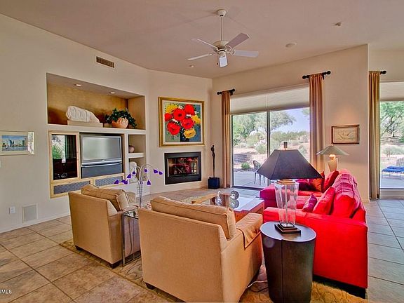 Golf course townhome in an upscale golfing community just 8 miles east of Scottsdale and 8 miles north of Fountain Hills. This end unit townhome has all the upgrades including: tile throughout living areas, built in entertainment niche, 8 ft solid wood doors, built in ironing board, surround sound system, electric awnings on patio, extended patio, all tile bath, heat lamps in master bath - nothing was left out. This is a must see and one of the lightest and brightest units in the community. You will love the open and airy feeling with 5 skylights - all in the right places. Extended rear patio is very private and is surrounded with gorgeous terraced landscaping. Carefree townhome living - exterior landscape maintenance and outside painting is covered by the association.