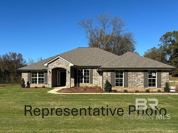 Gold fortified, no HOA, large lot! Experience the perfect blend of modern living and timeless charm in this spacious 4-bedroom, 3-bath, 2,300 sq ft home with a 3-car garage, located in Oak Grove Estates. Nestled on a large, partially wooded lot, this beautifully crafted residence offers convenient access to Mobile, Pensacola, and the stunning Gulf Shores beaches. Additional highlights include a 1-2-10 builder warranty and termite protection for added peace of mind. Photos are representative and not of the actual home. No representations are made by this floor plan. Photos, finishes, and colors shown are representations of actual materials and may not be an exact match. 10K builder incentive, call for details. Buyer to verify all information during due diligence.