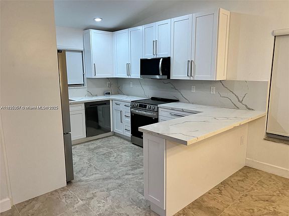 Beautifully remodeled 3/2 smart home with large fenced corner lot. All brand new appliances, kitchen, and bathrooms with beautiful finishes, granite countertop. Large pantry and new washer dryer inside the home. Lots of storage. New roof, hurricane windows. Security lights and camera.Mango and Mamey trees. Must see. Application required.