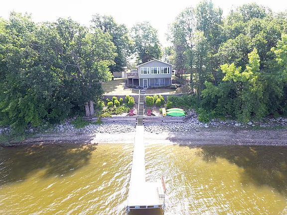 Move in ready 3BR, 2BA year-round on Big Swan Lake, this place has been meticulously landscaped and maintained by the owners. Grounds are park like; lakeshore is hard bottomed and great for swimming. House is turnkey and is going to be sold completely furnished & everything is included, floating dock, swim raft, kayak & everything in the garage/game room. Kitchen area has snack bar, main floor living area is good sized with free standing fireplace, 2 bedroom and the main with spacious full bath, huge vaulted 4 season porch on main overlooks the water. Walk-out lower level has big family room, 3rd bedroom and second bath. Walk out area has a screened area to enjoy the lake views bug free!! Detached garage is all finished off currently being used as a game room and has heat & A/C as well. Driveway is blacktopped; you will not find better sunsets!! Call today for a private showing!!