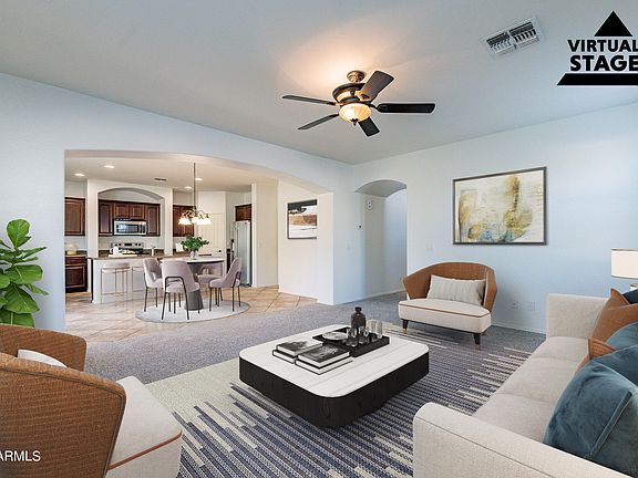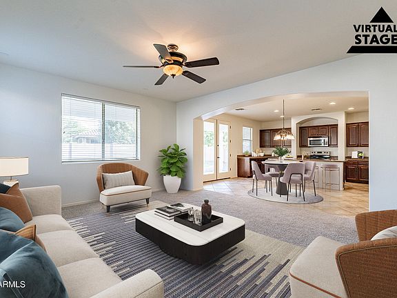 THIS IS THE ONE! Talk about curb appeal! Step right into your dream home in the heart of Gilbert, Arizona! Set perfectly on one of the largest lots in the neighborhood (.21 acre lot!), this 2,302 sqft home features 3 bedrooms +den (which could easily be bedroom 4) + GIANT LOFT, 2.5 bathrooms, and a HUGE BACKYARD! Inside, you'll find a spacious layout with tile, new carpet, and fresh paint. The large kitchen includes high end raised panel cherry cabinets, stainless steel appliances, as well as stunning granite countertops and ample counter space with an expansive island and breakfast bar. The kitchen opens up perfectly to the dining area and great room! Upstairs you'll find the large loft adjacent to the primary suite that boasts a large walk-in closet and a well appointed en suite bathroom with separate shower and tub. Both the loft and the primary bedroom feature direct access to a full length balcony! The second floor is complete with 2 bedrooms, a bathroom, & an upstairs laundry room. Outside: Watch the Arizona sunset from the full-length covered patio! The backyard is truly a clean slate and ready for you to put your creativity to work (Plenty of room for your dream backyard!) TRULY THE BEST LOCATION IN ALL OF GILBERT! This home is surrounded by great schools, beautiful parks, and a lively community close to San Tan Mall, Discovery Park, Top Golf, & easy freeway access. This floor plan and OVERSIZED LOT rarely come up for sale! Schedule your showing today and get ready to turn your housing dreams into a reality!