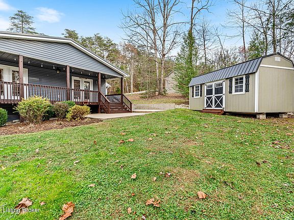 Escape to your dream lake-home retreat! This beautifully maintained 2-bedroom, 1 bathroom lake house at Nolin Lake offers the perfect blend of comfort, convenience, and stunning natural beauty. Situated just a short walk or golf cart ride to your private boat slip, this home makes enjoying the lake and all it has to offer easier than ever. The spacious open living areas include a cozy living room AND a family room featuring a corner fireplace, providing the ideal setting for relaxing after a fun-filled day on the water. The home also boasts a bright and inviting kitchen, offering everything you need to whip up your favorite meals with ease. Step outside and enjoy the covered porches that wrap around the home, where you can savor the lake breeze and take in the picturesque surroundings. The property also includes an additional storage barn, perfect for stowing away your outdoor gear, lake toys, or extra supplies. This lake house is ready to go! There's nothing you need to do except bring your personal items and start making memories. With its prime location, boat slip, and well-appointed interior, this home offers the perfect spot for making the most of your summer fun at Nolin Lake. Don't miss out on this rare opportunity to own a piece of Nolin paradise!