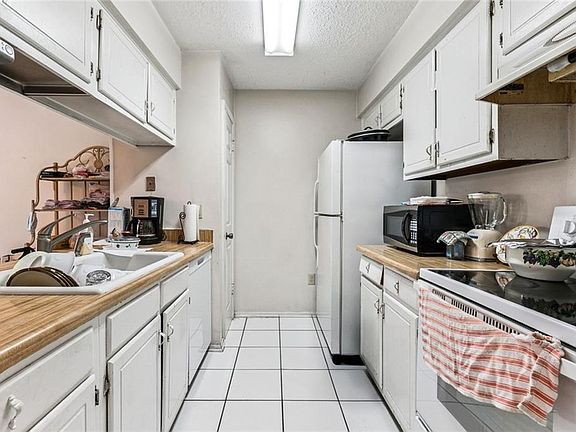 Convenient half bathSpacious primary suitePrivate fenced backyardSliding glass doorsDining spaceTile flooring