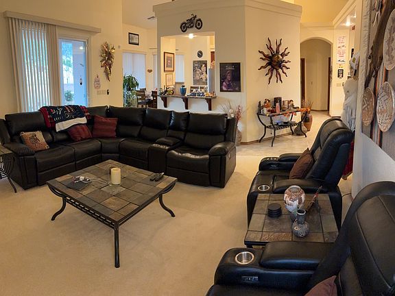 Just installed Anderson windows and sliding doors that are extremely energy efficient. The outside of the home was freshly painted less than two years ago and has a tree and plants throughout the front yard. Upgraded HVAC system as well as a mini-split unit in the front bedroom/office. Includes newer appliances (large refrigerator, stove, microwave, dishwasher, clothes washer/dryer, electronic water softener). Kitchen also has a center island and eating area with 3 large picture windows. The home also has a designated dining room and living room, 3 bedrooms total including master, 3 bathrooms (one in garage shop area), and laundry room. Large rear patio, large walled back yard with trees, 200 sq ft separate shed (there are 2, but one will be used by owner for landscaping maintenance supplies), separate RV driveway, RV 50 amp/water/dump hookups.