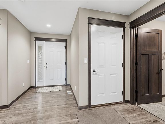 Welcome to this beautifully designed home offering both comfort and convenience at every turn. An oversized three-stall heated garage complete with a floor drain—provides ample space for vehicles, hobbies, and storage. Step inside to a welcoming drop zone that keeps daily life organized.The thoughtful floor plan flows seamlessly, featuring a laundry room that connects directly to the primary closet, making chores easier than ever. The main living area boasts a vaulted ceiling, creating an open, airy atmosphere perfect for relaxing or entertaining. The kitchen is a cook’s dream, complete with a huge pantry, granite counter tops and access to a deck just off the dining area, ideal for grilling or enjoying peaceful evenings outdoors. Head downstairs to a bright walkout basement offering even more living space. Here you’ll find a full bedroom and bathroom, along with tons of storage space to keep everything neatly tucked away. This home blends smart design with modern convenience—perfect for anyone seeking space, style, and functionality.