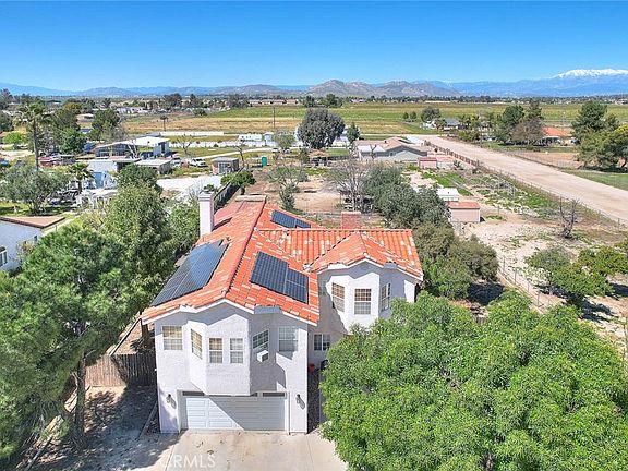 This spacious 4 bedroom 2 1/2 bathroom home in Menifee on 1.08 acres offers ample living space along with extensive outdoor amenities, and as a bonus a solar system which will be yours paid in full upon close of escrow. Take a look at the four outbuildings, and a large patio area which is a great place for entertaining family and friends. The property's sizeable acreage is perfect for animal lovers and the fully fenced lot provides a sense of privacy and security. Inside, the home boasts updated features like stainless steel appliances, granite counters, a farm sink, and newer carpeting, making it a comfortable and stylish living space. Ideal for those looking for a blend of country living and modern convenience.