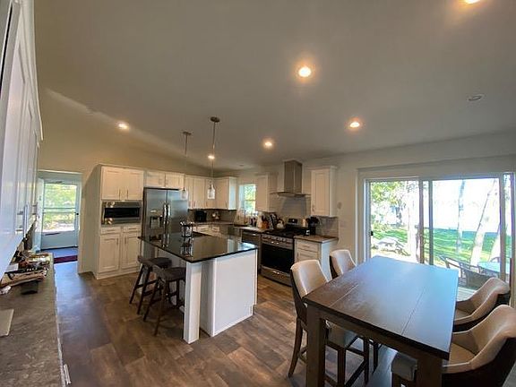 Living on peaceful and private Round Lake is a dream come true! This is a 2021 built Schultz home that shows like a model! A large gourmet kitchen with all SS appliances, 5 burner gas range with decorator hood fan, DW, BI microwave and FR door style refrigerator. Tons of cabinetry with the 42" uppers, soft close doors/drawers, oversized pots/pan drawers, huge center island with a granite top and the added wall of cabinets. The large RD opens up to the sunroom featuring a two-sided fireplace all with views of the park like yard and lake. A gigantic FR shares the gas FP and TV niche for a large screen smart tv. The owners suite features an walk in rain shower, walk in closet and views of the lake. Two BR share a full bath. You will appreciate the mudroom and adjacent laundry. The 1 ac treed yard, riprap shoreline with beach and new well and septic make this a turn key property. Insulated/finished 2 car garage and room to build garage/house next to the home. RV hookup spot as well.