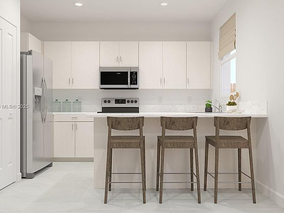 This new two-story townhome features impact resistant glass throughout. The first floor is occupied by the family room, dining room and kitchen arranged in a convenient and contemporary open-concept layout, while a living room provides additional relaxing and entertaining space. All three bedrooms are located on the second floor.