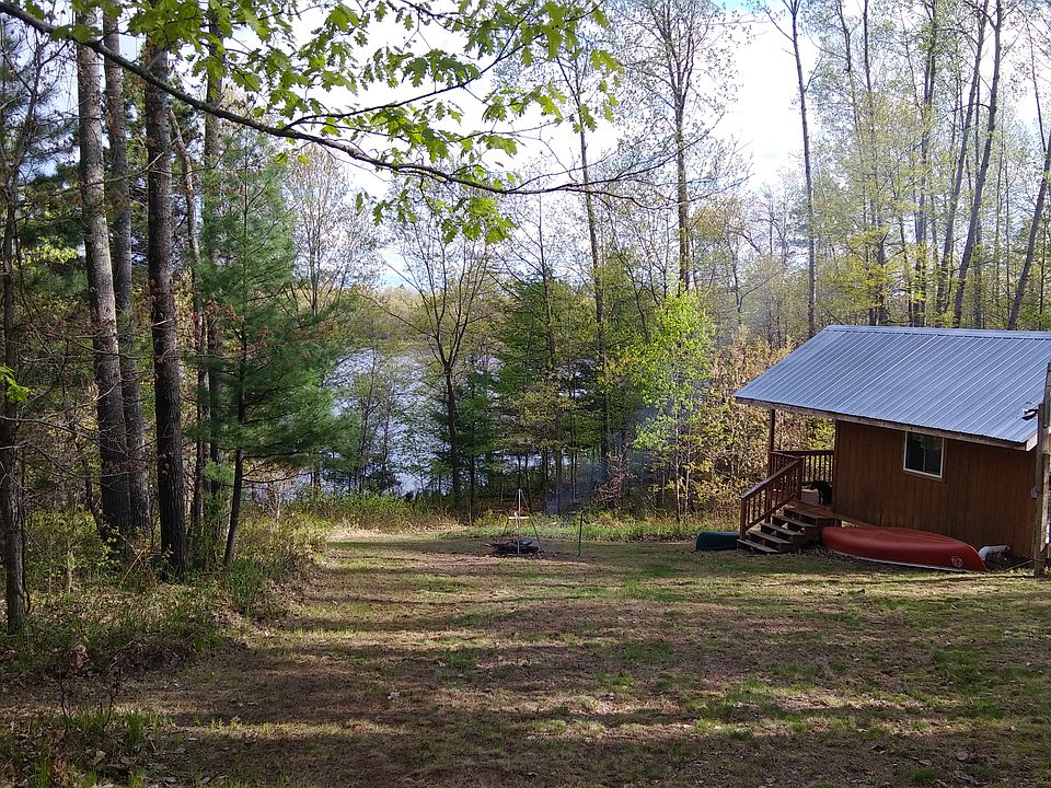 **SOLD** Waterfront, South-facing small cabin with 2 lots on Truck Lake in Burnett County. Town of Jackson. 2 wooded acres with lake views. Both lots are buildable. 1-room cabin with breakfast nook, main area, bunk beds, and bathroom area with incinerating, Incinolet toilet. No water to the cabin, but there is a sand point well next to the cabin. 100 amp electric service. Phone pedestal directly across the street. Satellite TV. Baseboard heat. Walls are insulated, vaulted ceiling is not. Ceiling fan. Wired receptacle for an electric range. Wired smoke/CO detector. Covered deck overlooking the lake. GFCI outlet on deck. Security motion light on the electric pole with outdoor GFCI for plugging in an RV. Fire pit with cooking grate and tripod. Trails. Dock. New Tracker jon boat included. 2 canoes included. All appliances, window treatments, and furnishings are included. (Microwave, fridge, toaster, coffee maker, griddle, tv, dvd, tables and chairs, bunk beds, dressers, minus seller's personal property) Cabin sits on 1 lot, and there is a driveway and clearing for building on the 2nd lot. Very low taxes. Within minutes of many public boat landings including North Sand, Green, and Mallard. Just down the road is highly sought after North Sand Lake. Minutes from Voyageur Village Golf Course and Resort, The Shop Bar and Grill, Jo Mamas Cafe, and A&H bait shop and grocery. Close to snowmobile trails and ATV/UTV routes and trails. You can deer, duck, and goose hunt on the property. Pair of loons on the lake. Shoreline is registered as naturally protected (Tax credits every year). State protected land across the lake and across the road, so the view and access will always be protected. Nobody can ever build across the lake. Very private and peaceful, would make an excellent hunting, fishing, atv, snowmobile base camp, or build on the property. Hiking and snowshoe trails in the area. Close to Webster, Siren, and A&H. We now live too far away to enjoy our piece of paradise as much as we would like. Agents welcome. Thank you.