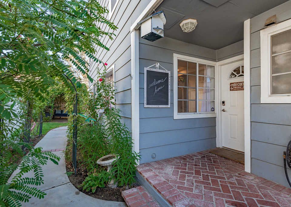 Beautiful Townhome with a ''Secret Garden'' ambience. A Verdant Rose Arch Walkway, Fruit trees, and lush greenery grace your Arrival! Many Upgrades in this lovely home include: Newer Luxury vinyl wood plank flooring and paint throughout home (2 yrs old), granite kitchen counters, additional kitchen storage, new LED kitchen lighting, refreshed kitchen cabinetry, Master Bathroom custom tile counters and showers, new shower tub and tile counters in hall bathroom, new and upgraded toilets, USB & Smart outlets, Smart AC (NEST), network cabling up and downstairs, custom stone/tile fireplace and ceiling fans to save on cooling costs.