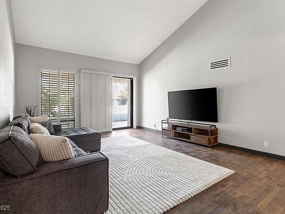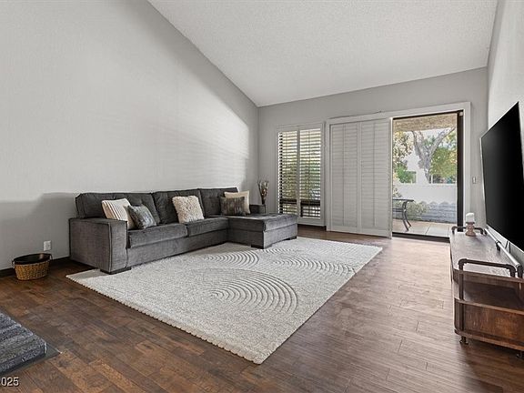 This 1-story, 3 bed, 2 bath Townhome is located in the highly desirable Sunrise Villas 8. The courtyard entry creates a private oasis offering a seamless indoor/outdoor experience. Double door entry. The unique Atrium w/natural light offers endless possibilities (herb, flower garden, meditation space) w/views from entry, primary bath & 2nd bed. Both secondary bedrooms sit apart from the Primary & have sliders. The hall bath has a private door into bed #3 & the hallway. The kitchen is the perfect size w/newer appliances, a window opening into the courtyard & it sits adjacent to the dining room. The living room offers a cozy fireplace w/sliding door out to your backyard patio w/gate that leads to the beautiful grounds & amenities (3 pools, 2 spas, walking paths). NEW in 2024; hot water heater, whole house water softener, breakers in the inside electrical panel, LVP (Luxury Vinyl Plank) flooring. HOA maintains roofs, front yard & common areas. Near custom homes, 10 min to strip & Freeways