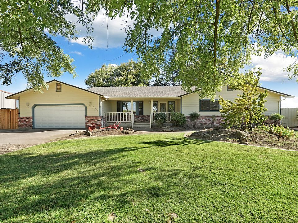 Solid, well-built main home with 3 bedrooms, 3 bathrooms and an additional sunroom. Land includes 5 acres with a 20 x 40 shop that has 12' rollup door, a great work area & storage space. Perfect to operate a business out of. Ample outside areas on this 5-acre parcel, tucked away from Sowles Rd. Great for entertaining and various outside activities. Area/Shed for 4H projects, dog kennel w/own septic. Outside areas for vegetable gardens, and storage of vehicles. Home has been well maintained. Garage has new doors. Newer water heater. Filter system under kitchen sink. Attic is well insulated and solar has been installed for low electricity bills. House & shop completely wired for security system. Area boosts country view of corn fields, vineyards & pastureland w/ amazing sunrises and sunsets that are special from this area. There is also a three bedroom modular home available for rent right next door, if you are interested.