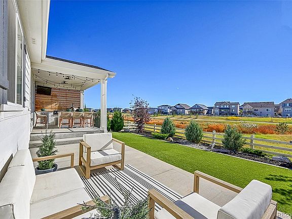 Incredible Southshore Ranch! Beautifully maintained by the original owner, this 5-bedroom, 3-bath home showcases a rare 3-car garage and backs to peaceful open space! The custom chef’s kitchen is a true showpiece—featuring stainless steel appliances, gas cooktop, double convection oven/microwave, custom hood, pantry, center island, large dining space and an open flow to the great room with a stunning fireplace, complete with a custom hearth! Decorative beams in both the kitchen and great room! Step outside to your covered deck with dream outdoor kitchen, complete with built-in Blackstone griddle, smoker, built-in bar top, TV and extended patio—perfect for entertaining or relaxing with a view! Did we mention no neighbors behind you? Beautifully landscaped back yard with drip system and sprinklers to wash down the low maintenance turf. The split floor plan allows for privacy. Primary ensuite bedroom on one side, guest bedrooms and full bathroom on the other! The finished basement impresses with two spacious bedrooms, a full bathroom, oversized family room, and an incredible custom bar, featuring dual wine refrigerators, three taps, pull-out trash, and generous seating—a true entertainer’s paradise or ultimate man/woman cave. Abundant storage EVERYWHERE and on both levels! Located in the highly sought-after Southshore community featuring two community centers, community events, miles of trails and 120 acres of public open space! Don't miss the top-rated Cherry Creek Schools, easy access to the 8-mile Aurora Reservoir and access to resort-style amenities—rec centers, pools, and parks—all just minutes away! Close to E-470. Southlands Mall - just 5 minutes away! You will love this designer appointed home - hurry before it is gone! This is Colorado living at its finest!