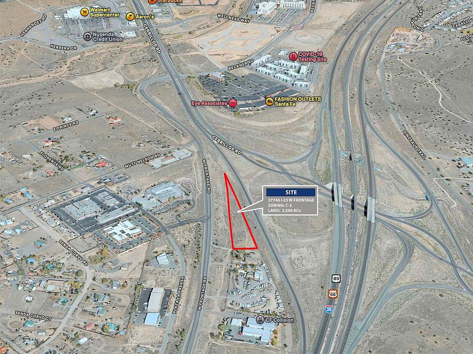 Exceptional commercial land opportunity at 27746 I-25 W Frontage Rd, located just minutes from downtown Santa Fe with direct access and visibility from Interstate 25.