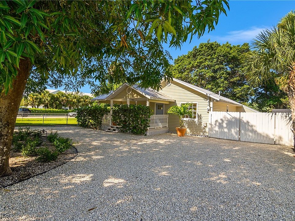 Charming Historic Gem in the Heart of Downtown Bonita Springs. Welcome to this beautifully renovated 2-bedroom, 2-bathroom home nestled on a rare double lot in the vibrant heart of Downtown Bonita Springs. Brimming with character, this unique property blends timeless charm with modern comforts. From the moment you arrive you’ll be greeted by a spacious front porch—perfect for morning coffee or relaxing evenings. Step inside to find a completely renovated interior, featuring stylish finishes and preserved architectural details. Outdoors, enjoy the patio and sprawling fenced-in yard along with gated parking next to the house providing ample space for a boat or RV. The home is situated in Flood Zone X—no flood insurance required—providing peace of mind. The home is also located within TFC-2 zoning, allowing flexible development potential for future growth. Whether you're seeking a charming primary residence, a winter retreat, or a unique investment opportunity, this home offers a blend of historic allure, modern updates, and unbeatable location. Don’t miss your chance to own this stunning home in the center of Bonita Springs.