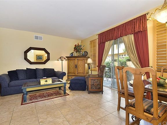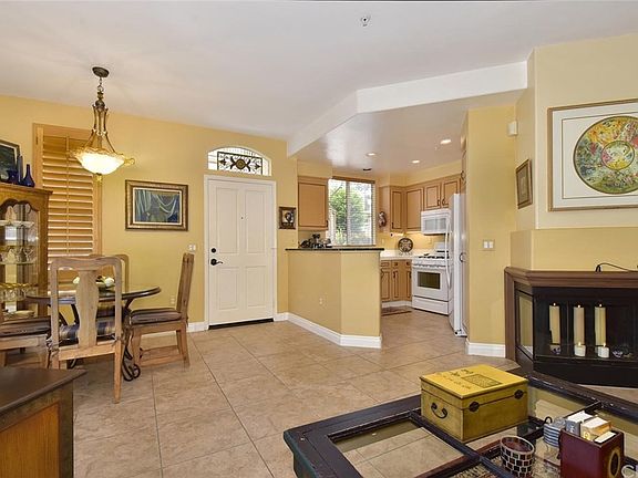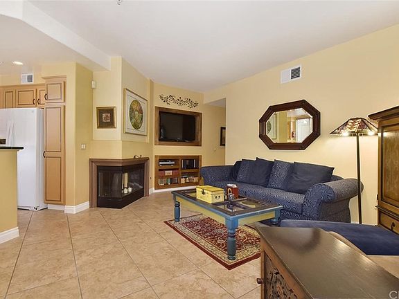 Welcome Home to Cantada in Tustin Ranch. If you have been looking for a single level and ground level entrance home, it has finally come on the market! Enter into an open plan front room with Living Room, Bright Kitchen and Dining all in one place, anchored by a cozy fireplace. Right outside is a large patio with slider, which is extra private because this is an end unit. Two bedrooms, and two full baths, including an en suite Master Bedroom Bath combination. Cheerfully decorated throughout with custom paint and upgraded Ceramic tile flooring. Just when you think it could not get any nicer, the laundry is located inside the unit, leaving lots of space in the extra deep one car garage with direct access. Additional parking in an assigned car port, and plenty of parking for your guests. This is a wonderful opportunity for First Timers, or Down Sizers. Hurry on this one, because this floor plan and one as nice as this does not come up often. This home has so many nice features, and so does the community. Don't delay or you might miss out!