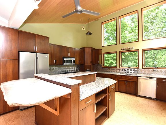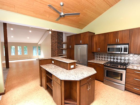 One of a kind home with great access to a part of Lake Monroe! Huge open living area with cathedral ceilings, gourmet kitchen with granite counters, custom cabinets, stainless appliances, backsplash, limestone bar, modern lighting and fixtures, unique cork flooring and windows galore!! From the living room you have access to a sunroom, separate screened porch and open sunporch. Great place for entertaining or gatherings at the Lake! 3 bedrooms on main level plus a study with 3.5 baths and lots of room to spread out. Master bedroom has its own bath suite with soaking/jetted tub and separate shower and access to a private deck out back along with 2 new skylights for lots of natural light. Downstairs you will find a huge family room with wood burning fireplace plus a kitchenette/bar, separate media room and huge finished workroom or storage area. Expanded and spacious 3 car garage for your cars and/or boat!! Enjoy nature with views in every direction especially the seasonal water view!! Just a city block from the Eagle Pointe Resort and a mile from Fourwinds Marina on Lake Monroe!!