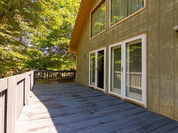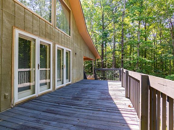 Convenient location to I-75 and shopping yet so private. No HOA fees!! A-frame style home on 2 acres. Driveway has just been regraded with new layers of gravel. Backyard is amazingly level for expansion, extra structure or just serenity! Two story great room with thermostatically controlled gas logs (could be wood burning, too) open to kitchen and bkfst bar and dining area. Two bedrooms and a bath on main level and upstairs, a private master bedroom with its own bath. Laundry room on main level. Massive deck off great room! It is so private when all in bloom.