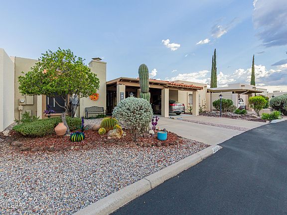 2BR/2BA townhome in a 55+ community with Santa Rita Mountain views. All-tile flooring throughout; living room with classic Kiva fireplace; efficient galley kitchen with stainless appliances, ample counter space, and built-in storage. Private main suite includes an en-suite bath, good closet space, and direct access to the covered patio. Outdoor living features a screened Arizona room plus an east-facing paver patio to enjoy the views. Recent improvements include Renewal by Andersen windows (2023), newer HVAC, and fresh exterior paint. Practical perks: carport and convenient guest parking across the street. Enjoy the Green Valley lifestylenear shopping, dining, golf, medical services, and I-19 with access to Green Valley Recreation centers offering pools, fitness, pickleball/tennis, arts & crafts studios, clubs, classes, and events. Low-maintenance, well-located, and ready for its next owner.